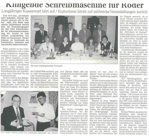 Der Sonderpreis der Jury geht in diesem Jahr an den Kulturkreis Bad Orb. Über die zahlreichen kulturellen Angebote gibt der Video-Clip einen Einblick, ob es die Theatergruppe und die Freilichtbühne sind oder die Berichte der Akteure und Organisatoren von Ausstellungen und Lesungen. „Es ist für alle etwas dabei“, wie es Laudator und Jurymitglied Horst Wanik von der Sparkasse Gelnhausen so schön formuliert. In diesem Jahr feiert der Kulturkreis seinen 25. Geburtstag.